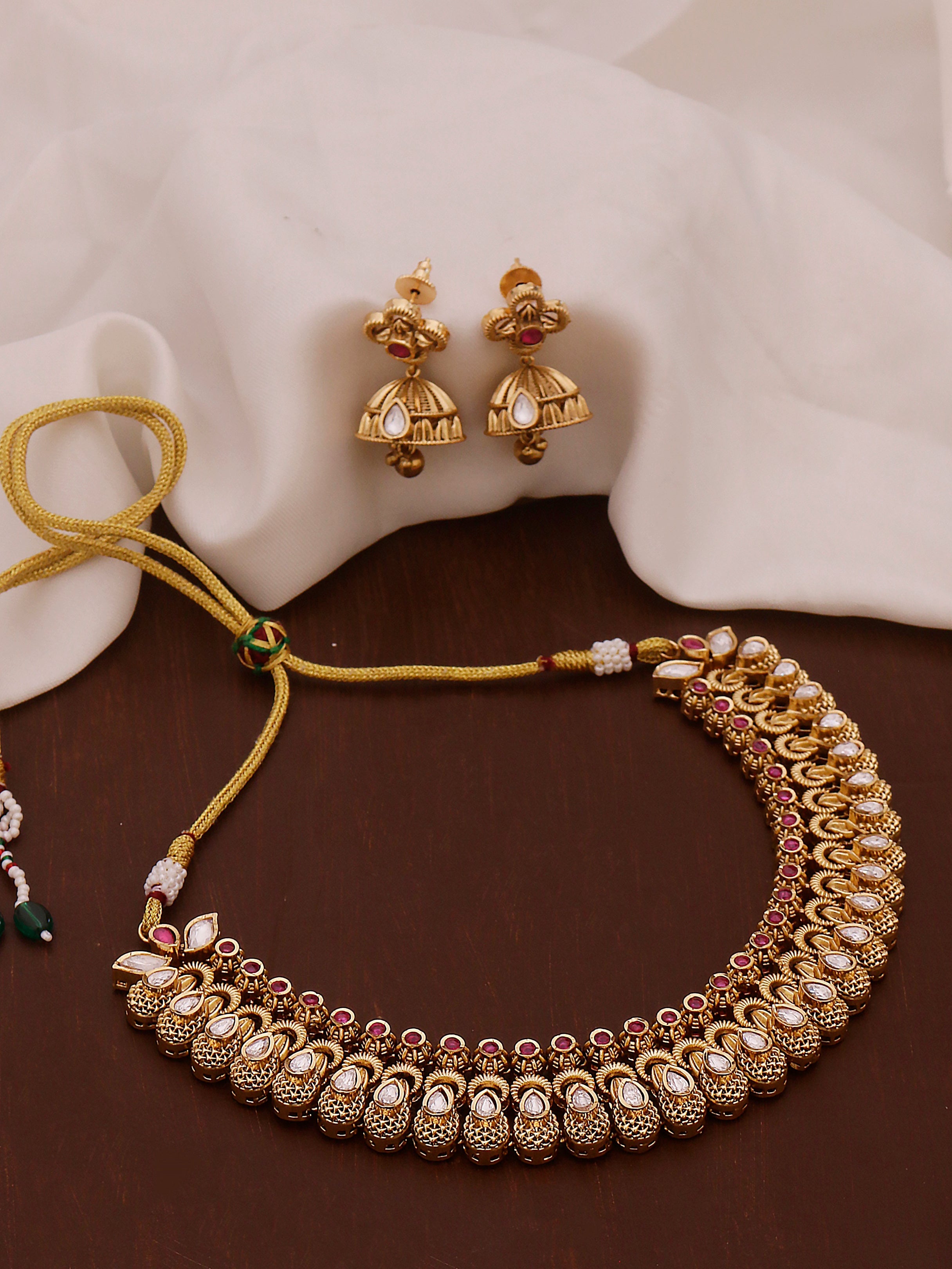 Swisni Alloy Golden Necklace, Earring Beads Necklace Set For Women|For Girls|Gifting|Anniversary|Birthday|Girlfriend
