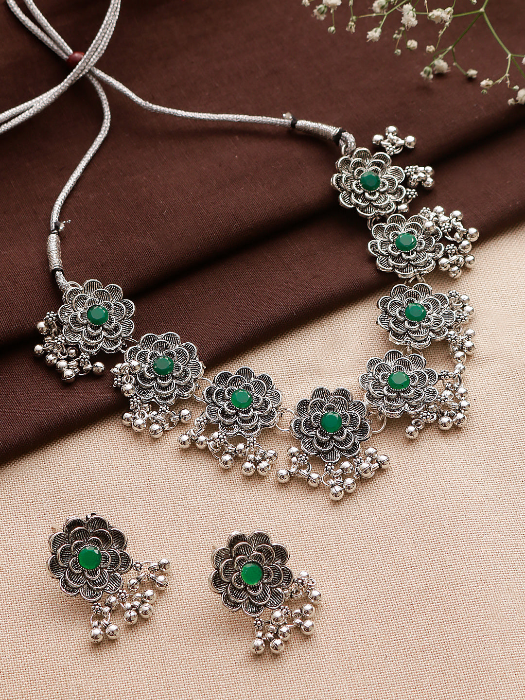 Swisni Alloy Golden Necklace, Earring Silver Beads Necklace Set For Women|For Girls|Gifting|Anniversary|Birthday|Girlfriend