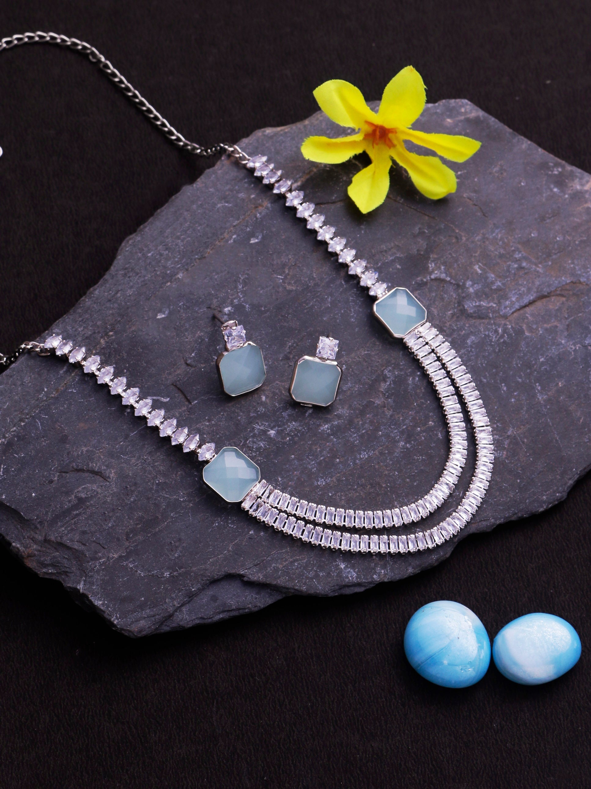 • Swisni Alloy Silver Necklace, Earring Beads Necklace Set For Women|For Girls|Gifting|Anniversary|Birthday|Girlfriend