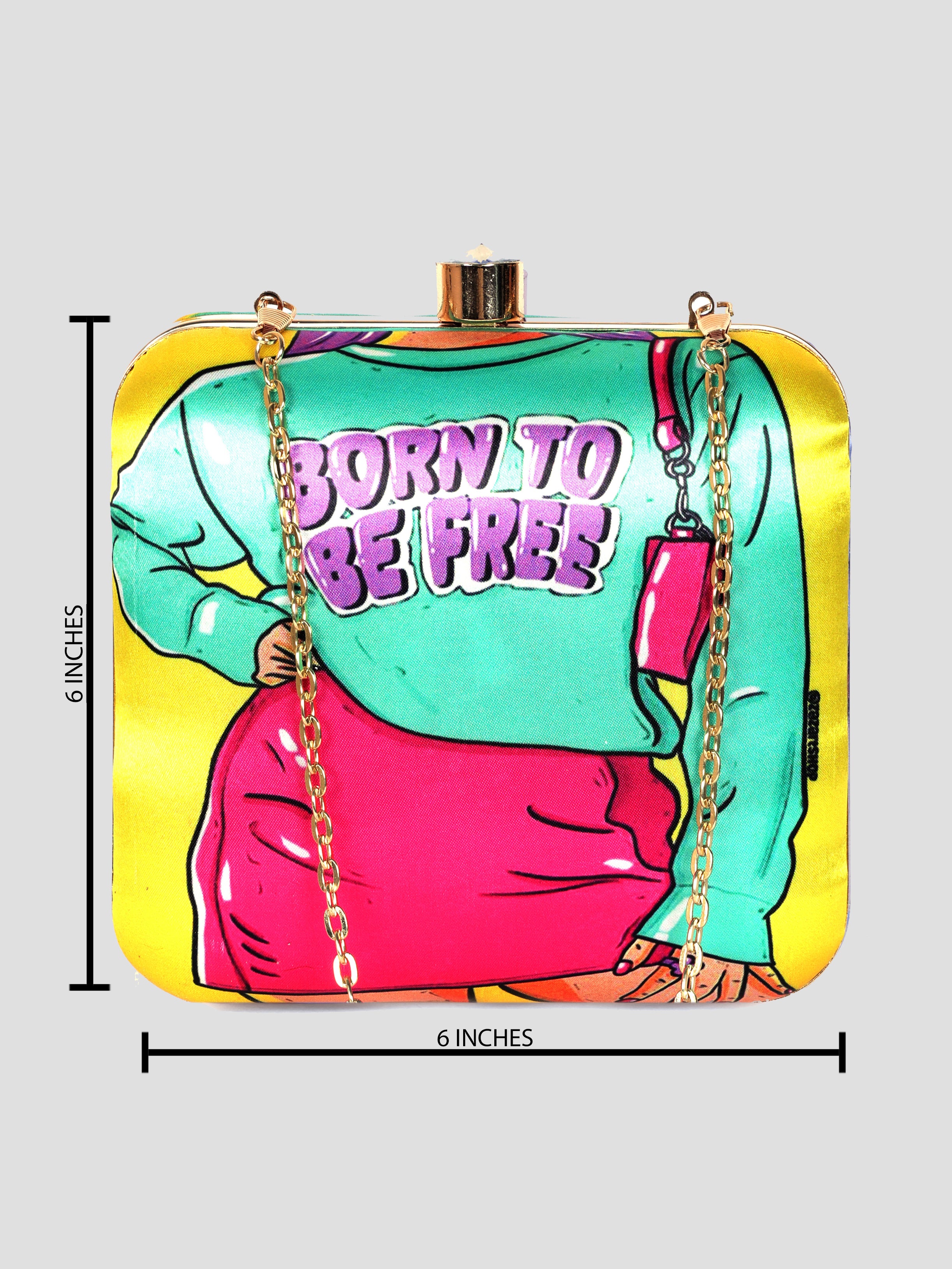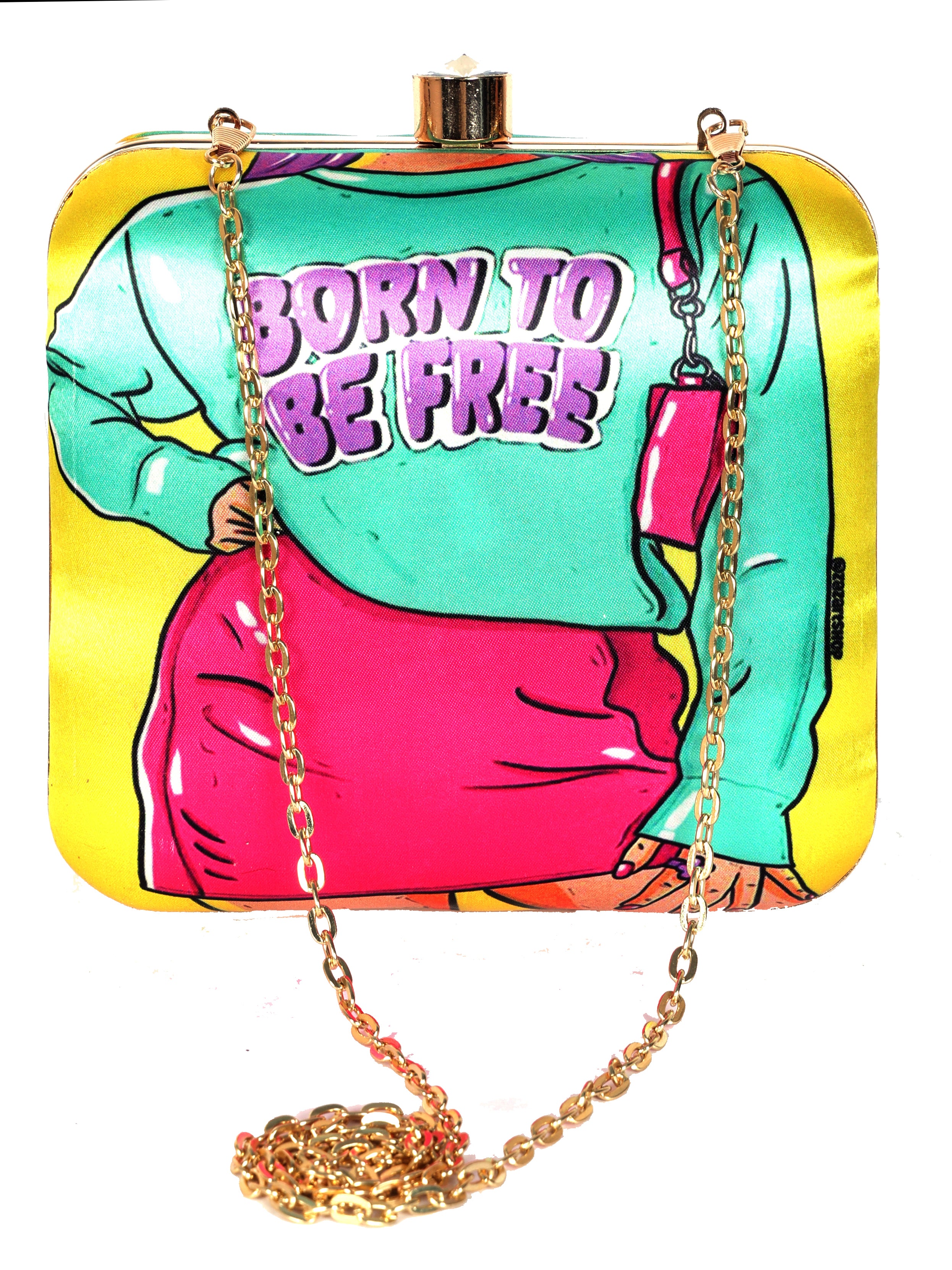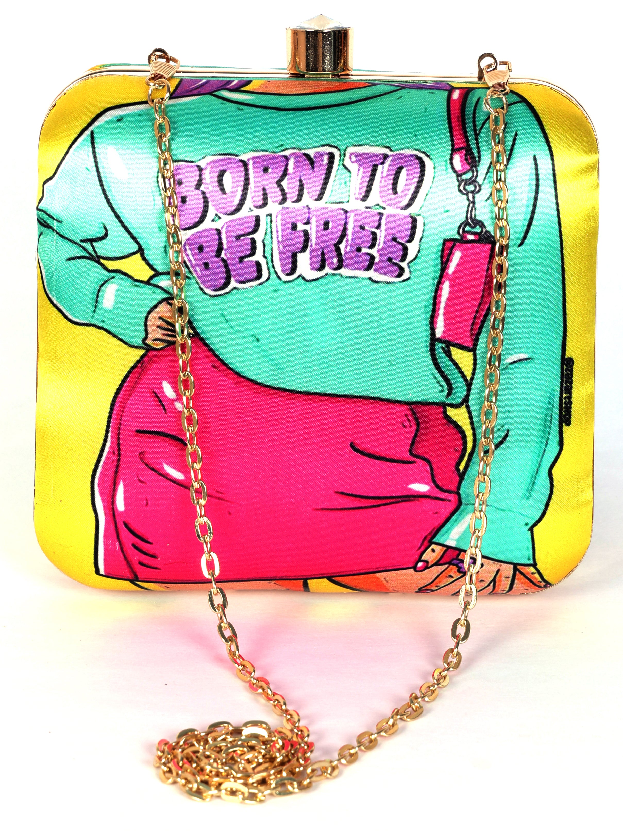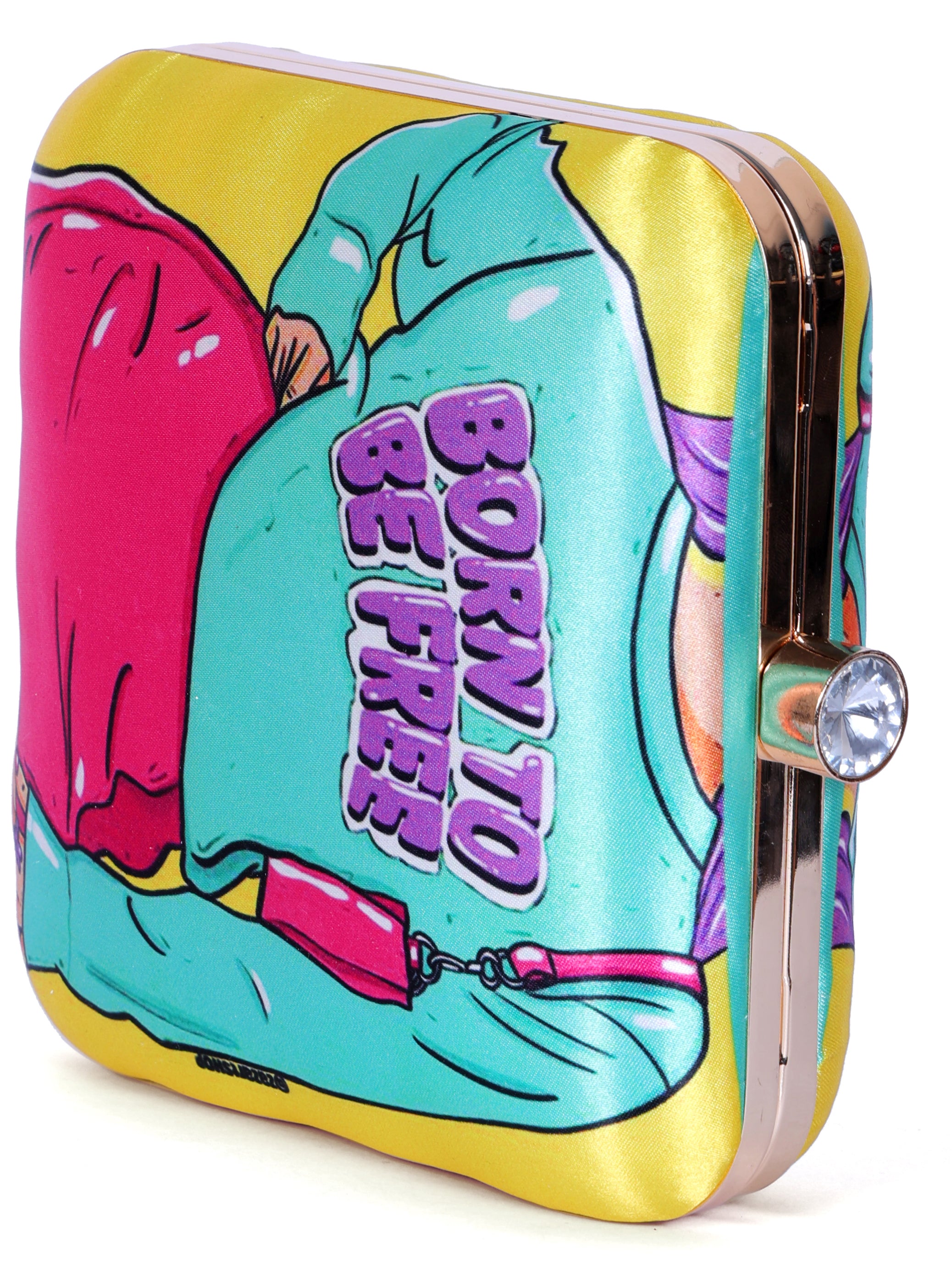 PRINTED DIGITAL CLUTCH BAG BORN TO BE FREE