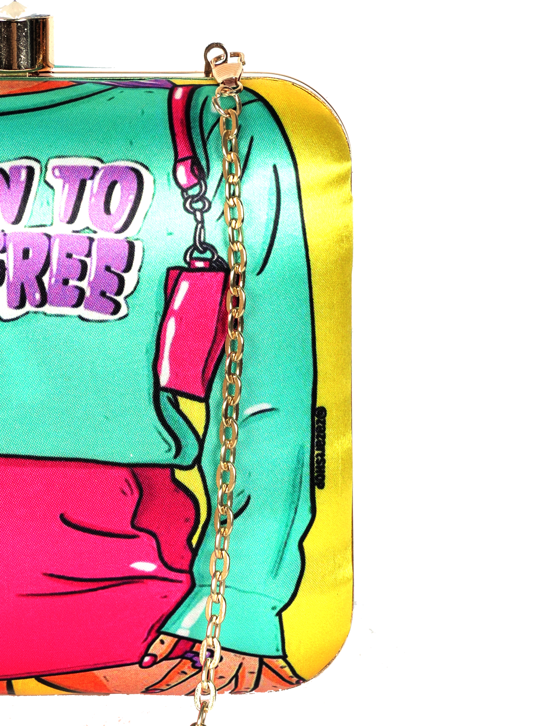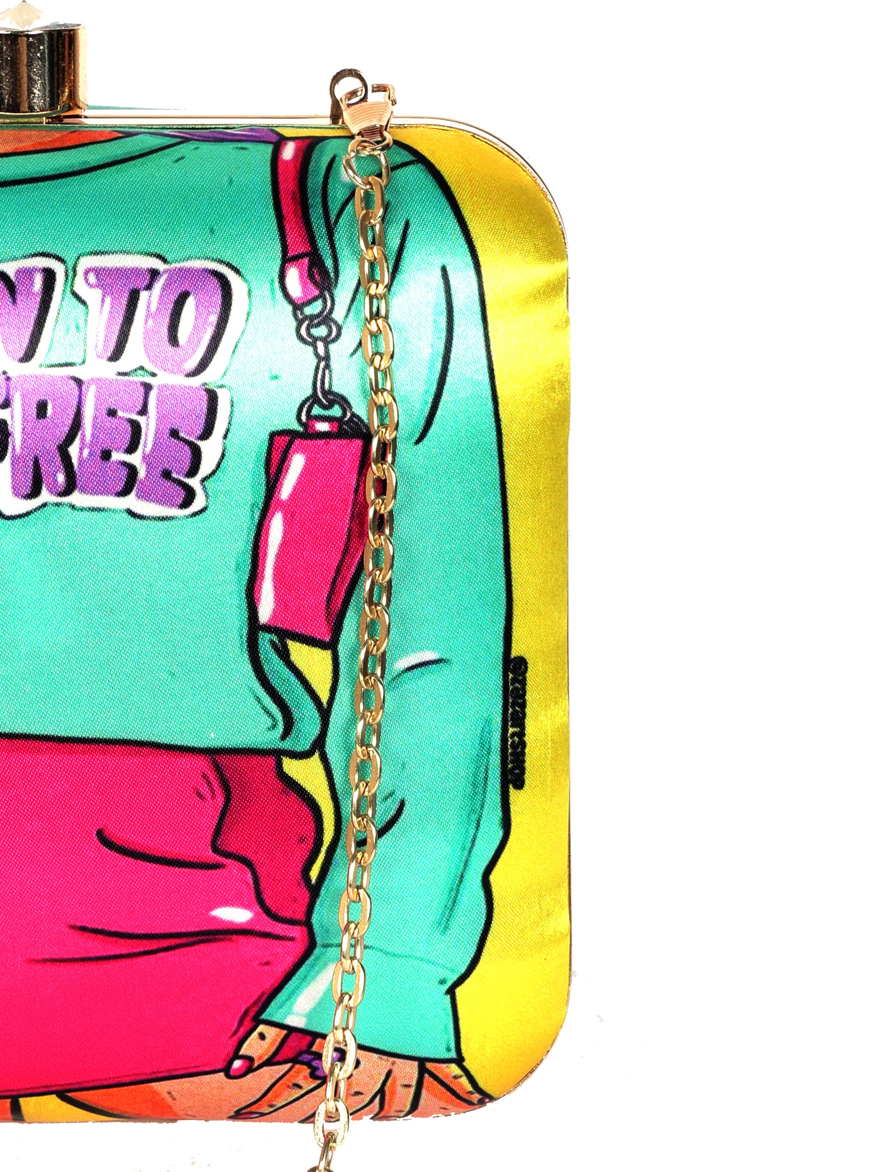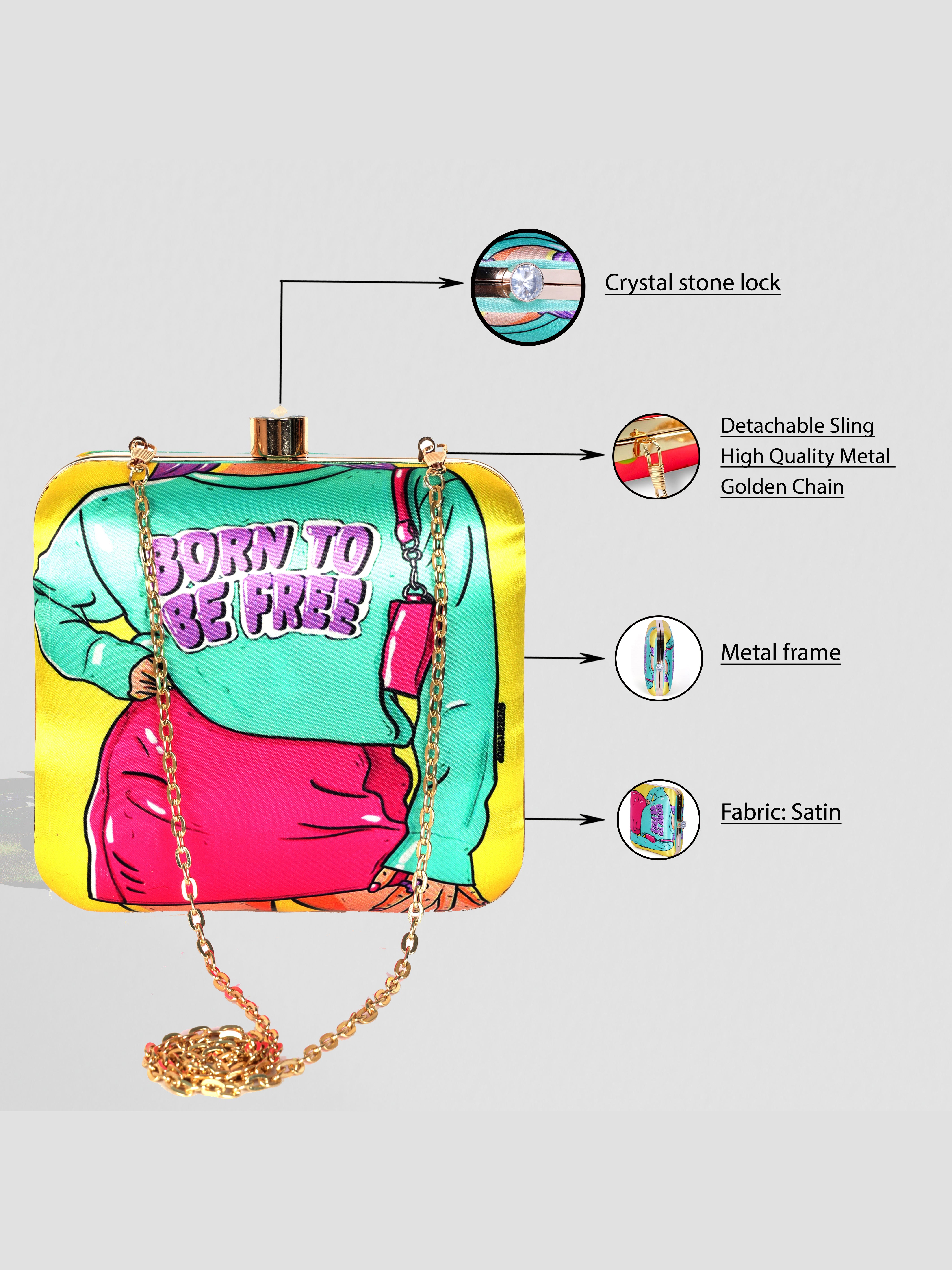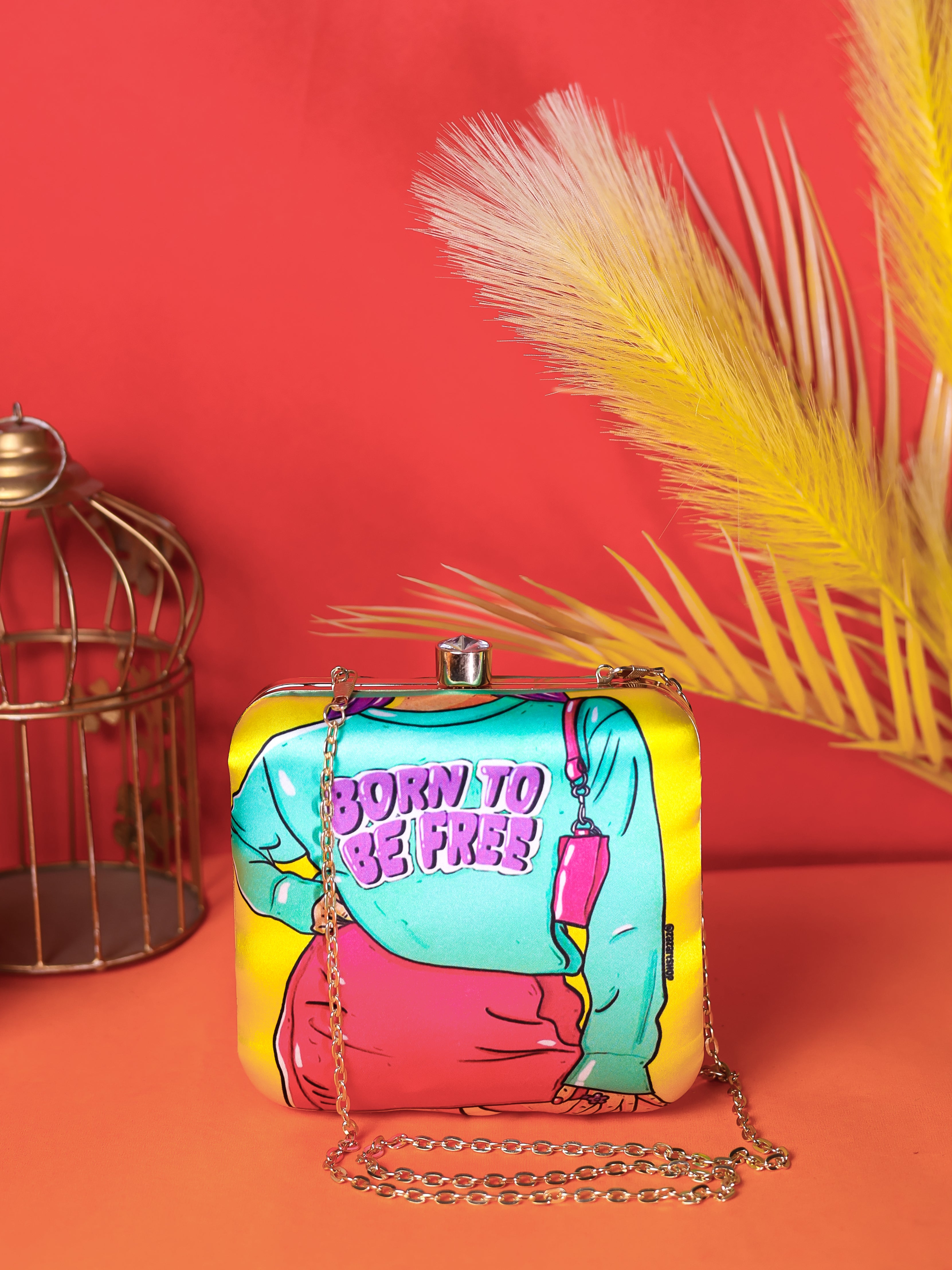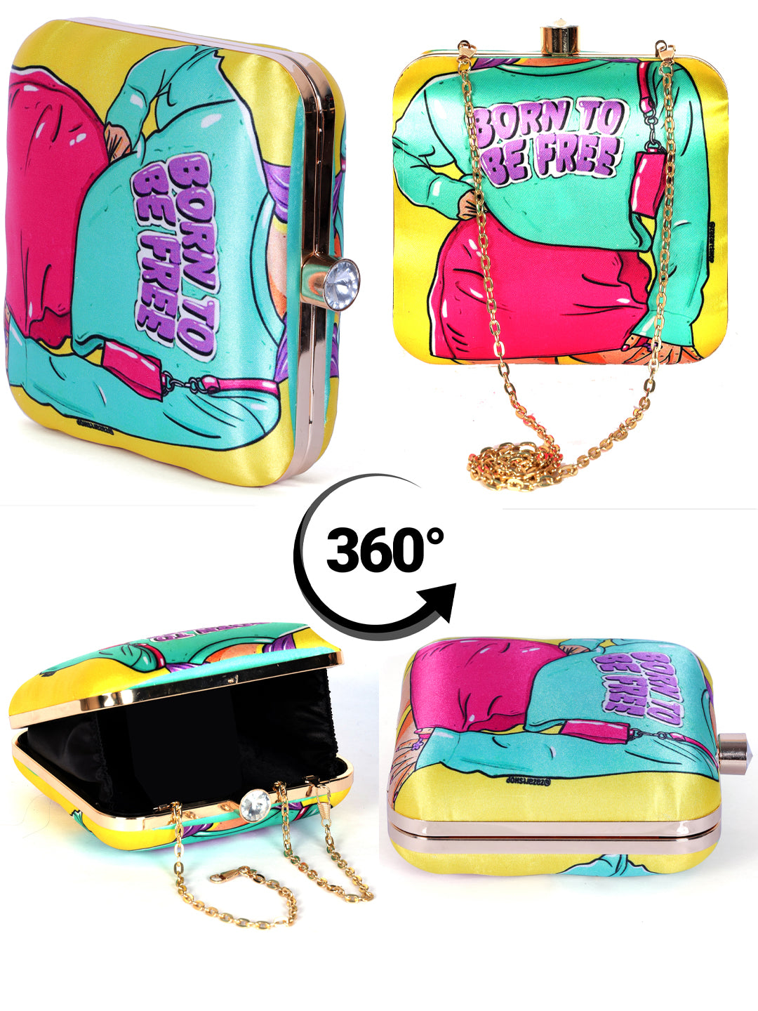 PRINTED DIGITAL CLUTCH BAG BORN TO BE FREE