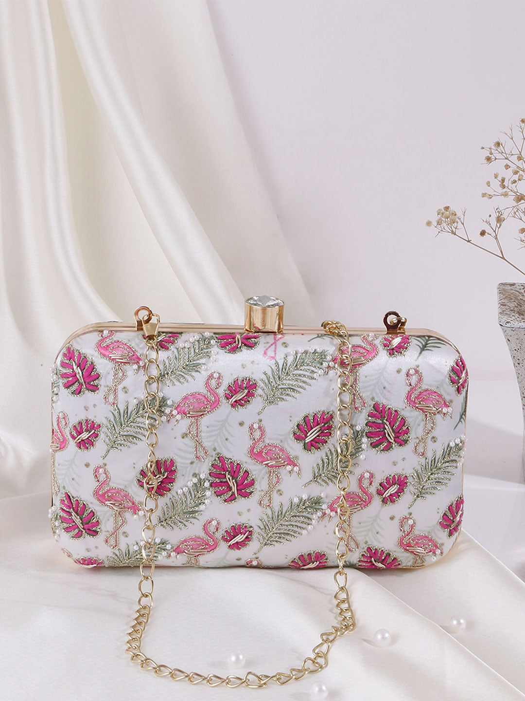 SWISNI PRINTED EMBROIDERED CLUTCH BAG
