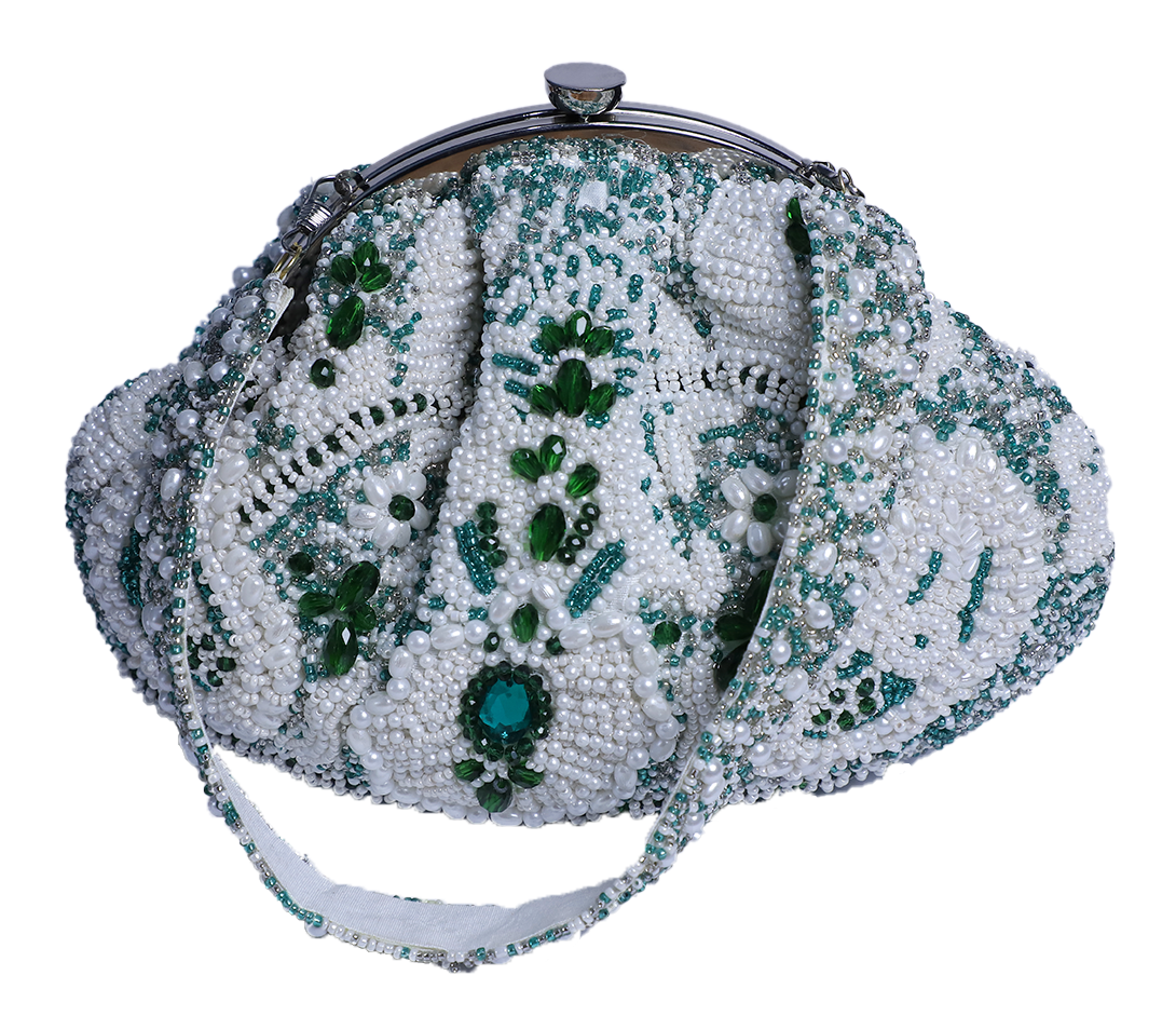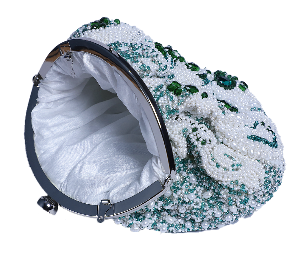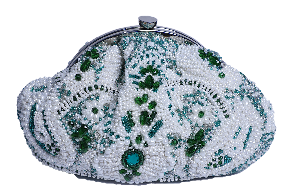 Swisni Heavily Green Crystal Work Hand Held Clutch Bag for Women & Girls