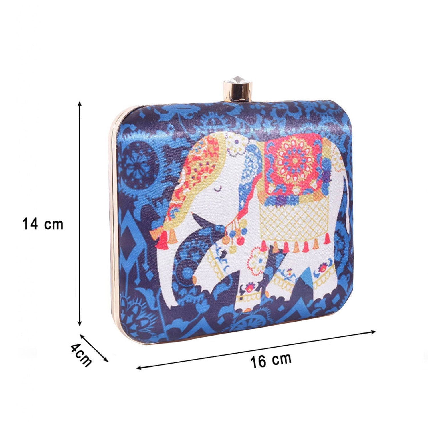 Elephant Satin Digital Print Square Box Clutch for Women & Girls