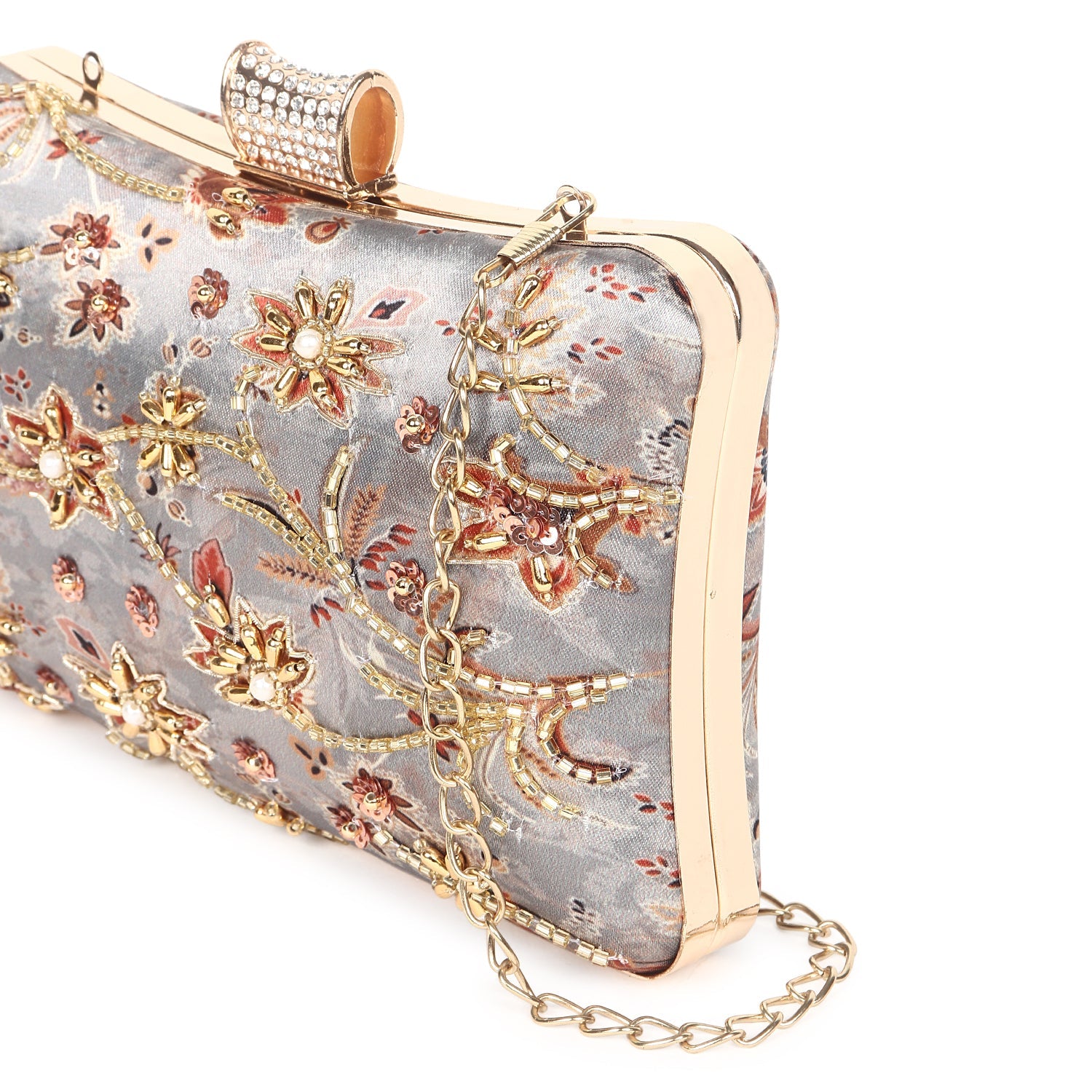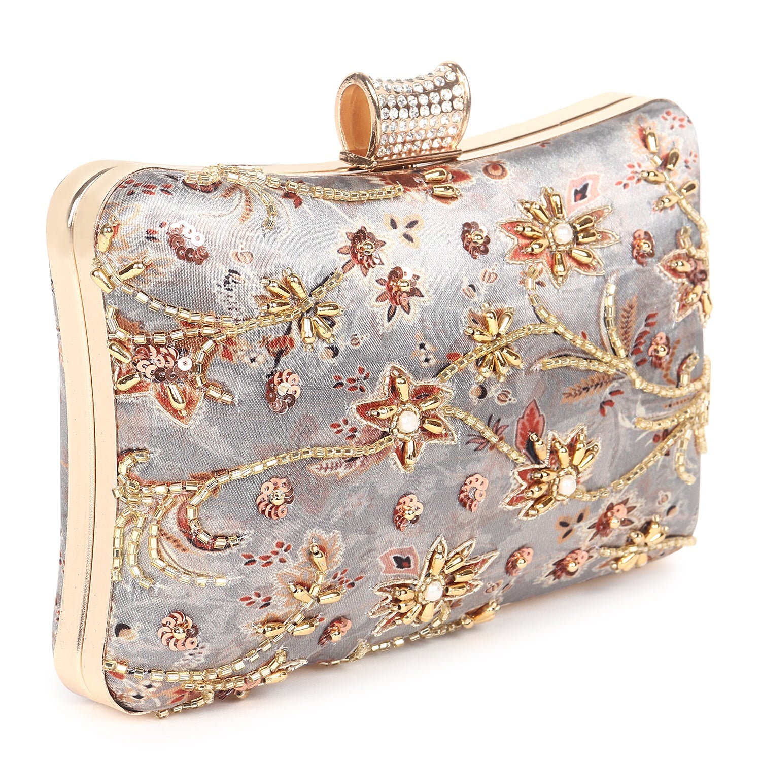 Printed embroidered clutch bag